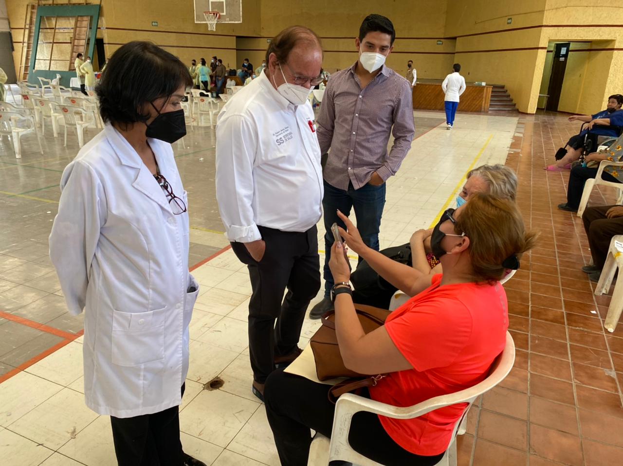 Durante su visita a las instalaciones del Gimnasio Municipal, el Secretario de Salud estuvo acompañado por la jefa de la Jurisdicción Sanitaria No. 7, María del Rocío Quiroz Flores, y personal médico y de enfermería del Hospital General de Francisco I. Madero. (EL HERALDO)