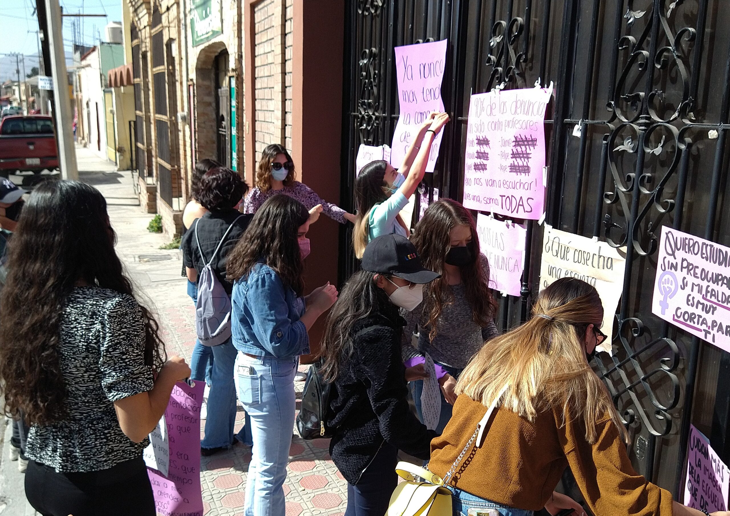 Poco después de las 3:00 de la tarde, las manifestantes acudieron al colegio en mención para colocar sendos carteles en los que se hacía referencia a estos abusos, que según dieron a conocer, van desde los insultos machistas o misóginos, miradas lascivas e incluso tocamientos que los responsables hicieron ver como “accidentes”.