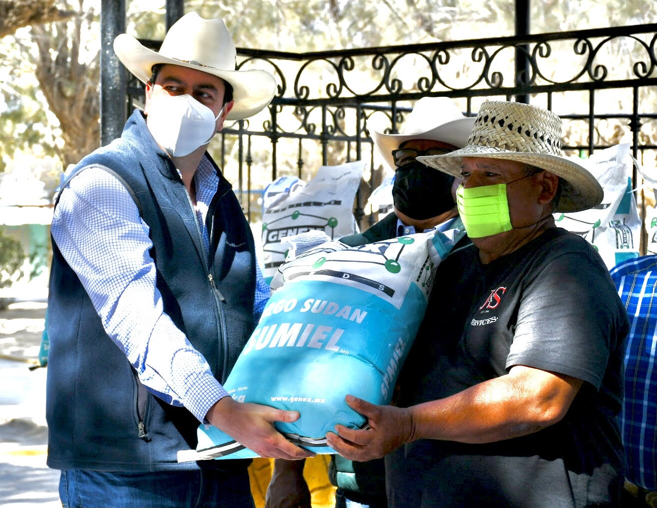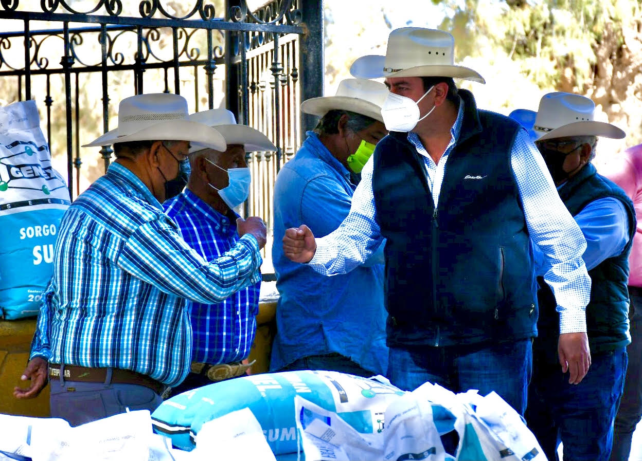En el ejido Paredón el alcalde de Ramos Arizpe, Chema Morales Padilla, entregó a través del programa rural “Más Semilla” 975 bultos de semilla de sorgo certificada e importada para la temporada primavera – verano 2021 y que beneficiará a 325 productores del campo.