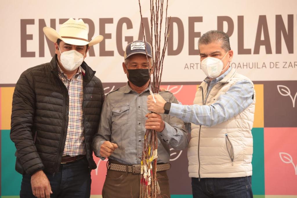 Arteaga, Coah; a 17 de Marzo de 2021.- En cumplimiento a los compromisos con las y los productores de Arteaga, el gobernador Miguel Ángel Riquelme Solís entregó 38 mil plantas de manzana y 240 toneladas de semilla de avena en San Antonio de las Alazanas.