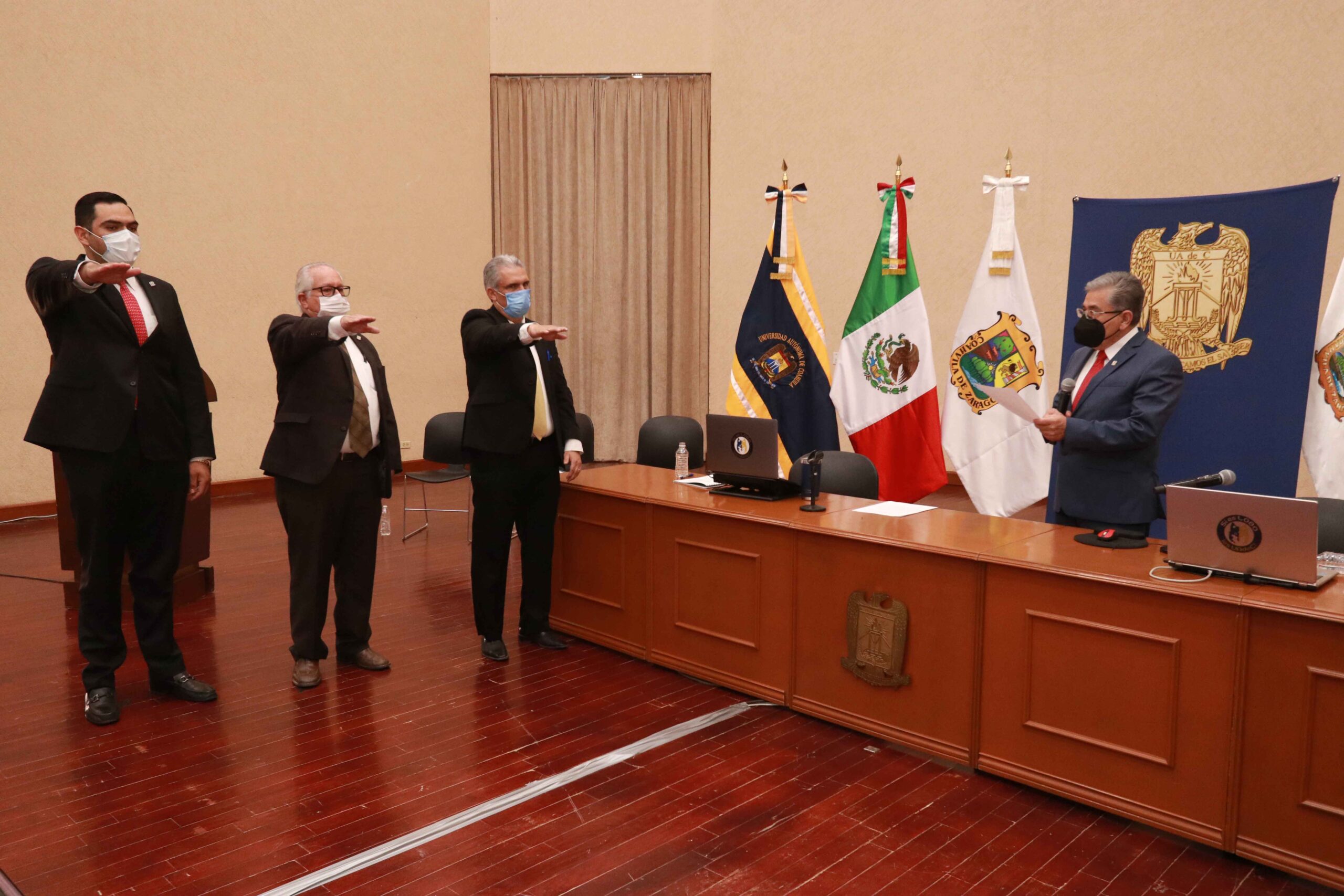 Monclova, Coah.- Este jueves en Sesión Extraordinaria del H. Consejo Universitario de la Universidad Autónoma de Coahuila, se eligieron como titulares de las direcciones de Planeación, Asuntos Académicos y Tesorería General para el periodo 2021-2024 a Jesús Alberto Montalvo Morales, Daniel Garza Treviño y Jorge Alanís Canales, respectivamente.