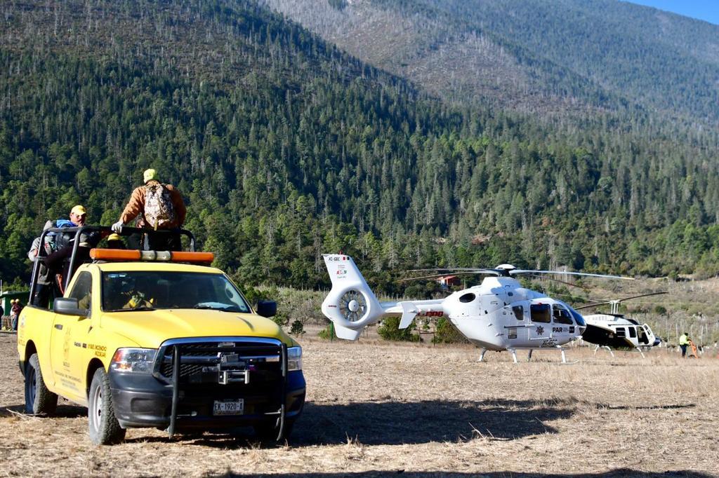 Este viernes, se trabaja con 500 elementos entre brigadistas y personal de logística, 3 helicópteros del Gobierno del Estado y 2 helicópteros de la Guardia Nacional.