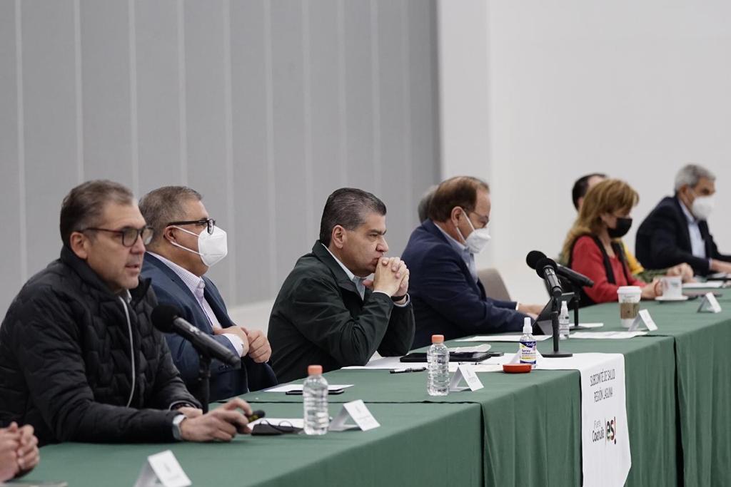 Torreón, Coah; a 22 de Marzo de 2021.- El gobernador Miguel Ángel Riquelme Solís encabezó la cuadragésima cuarta reunión del Subcomité Técnico Regional Covid-19 Laguna, en la que reiteró que hay que seguir con “pies de plomo”, cuidándonos, pese a que en esta región se ha logrado bajar la ocupación hospitalaria a sólo el 6.9 por ciento.