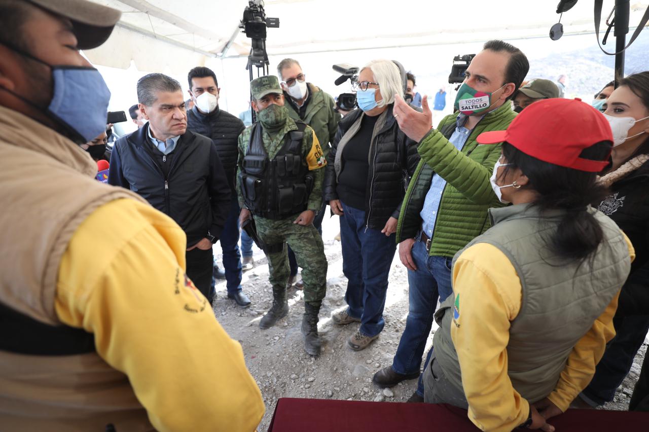 El gobernador del Estado, Miguel Ángel Riquelme Solís, y el alcalde de Saltillo, Manolo Jiménez Salinas, estuvieron presentes al inicio del tercer día de trabajo y han estado coordinando las acciones desde el primer momento.