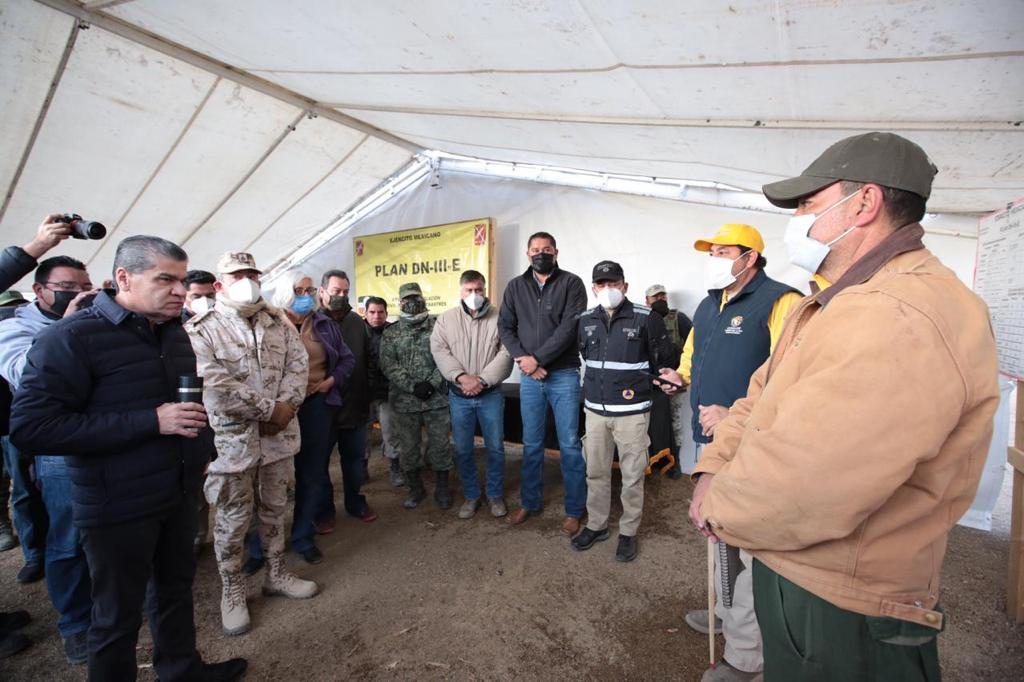 De los dos helicópteros de la Secretaría de Marina, mencionó que fue informado que este día llegarán a Coahuila y que este viernes estarían en condiciones de sumarse a los trabajos de combate al incendio.