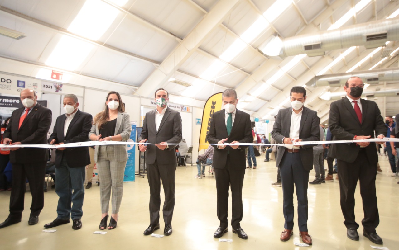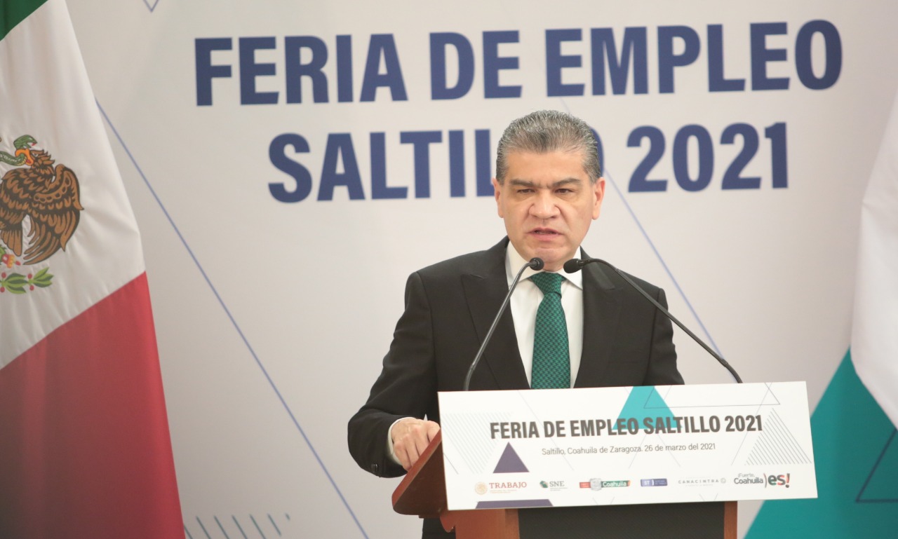 ‘Coahuila está de pie’, dijo el gobernador Miguel Riquelme al inaugurar la Feria del Empleo Saltillo 2021.
