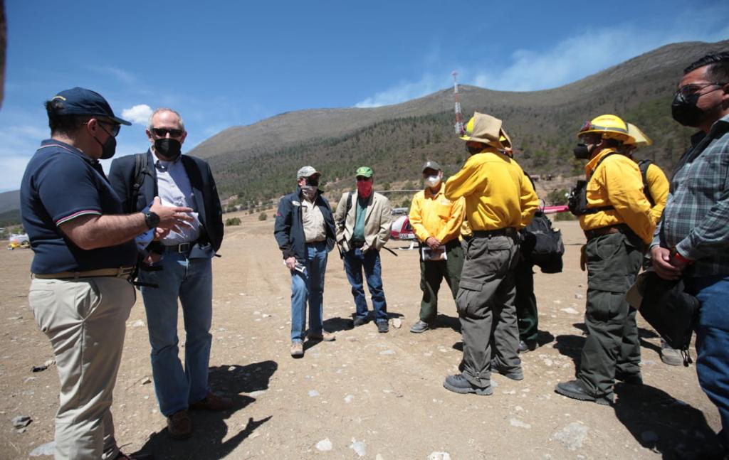 Acompañados del Director de Aeronáutica del Gobierno del Estado, Carlos Alberto Porter Cabrera, el grupo de funcionarios de la compañía, encabezados por su presidente y CEO, John Gould, recorrieron el lugar para iniciar la planificación de la estrategia previa de combate a seguir en las próximas horas.
