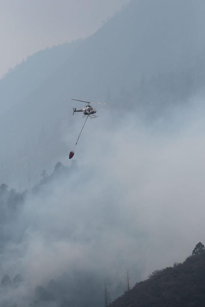 Además, detalló Canales Gutiérrez, 6 helicópteros apoyaron con descargas de agua con retardante de fuego, los cuales realizaron 235 descargas, así como dos aeronaves para transporte de los combatientes a los sitios de más difícil acceso.
