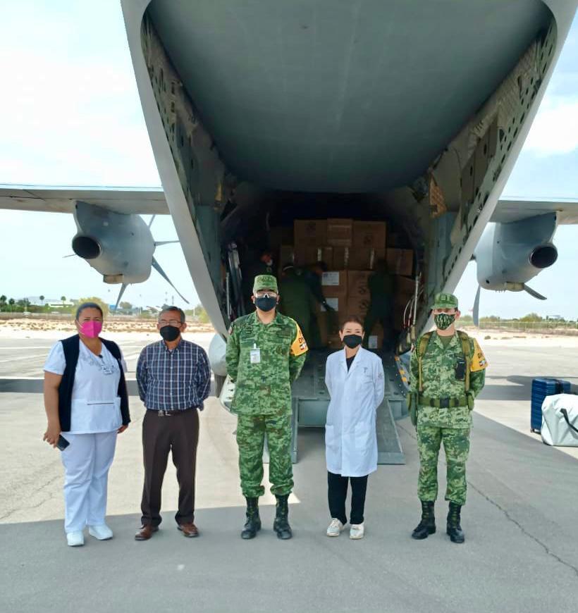 Torreón.- Un total de 18 mil 80 vacunas SINOVAC y las primeras 2 mil 360 dosis CANSINO arribaron este lunes a la base militar aérea en la Ciudad de Torreón.