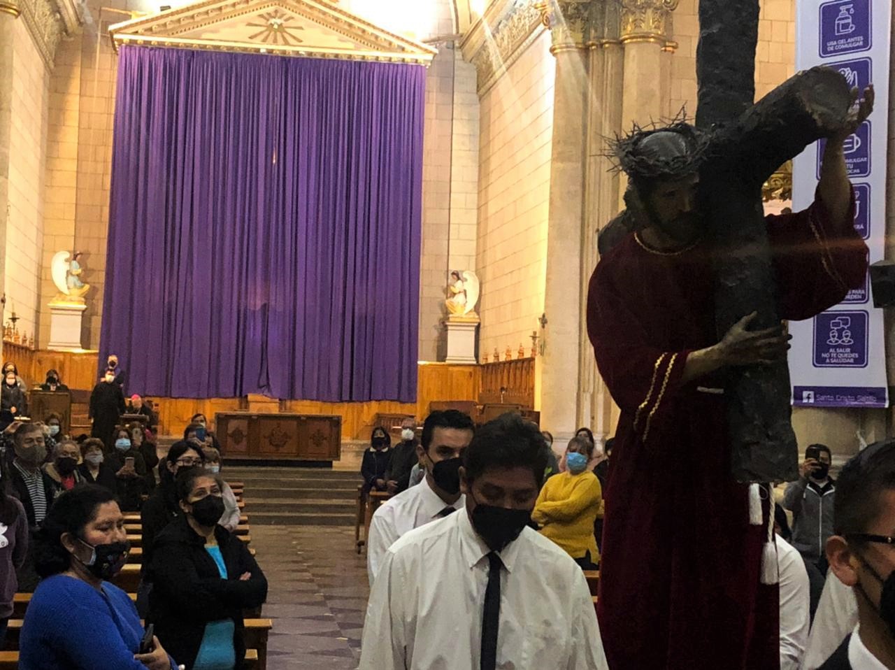 «Celebramos, en este momento, las tres caídas dentro del viacrucis. El encuentro de María con Jesús en el camino del calvario», comentó el obispo emérito Raúl Francisco Villalobos Padilla, desde la Catedral de Santiago.