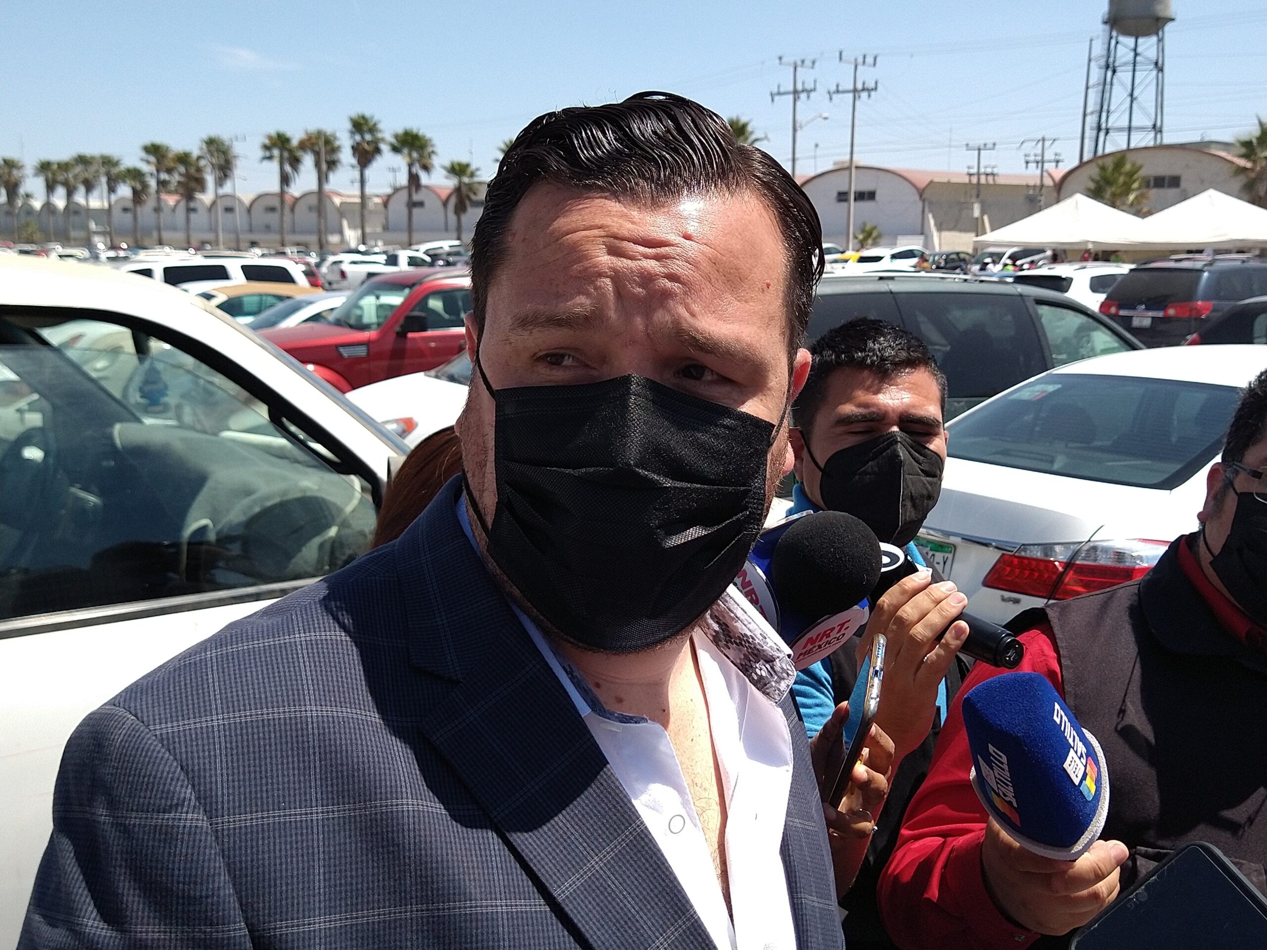 “Esto es porque el de la UA de C es un punto de vacunación doble, tanto peatonal como vehicular. Ahora estamos aquí supervisando el de CANACINTRA, son operativos donde participan más de cien elementos en todos los puntos, porque sabemos que es un proceso largo, tedioso, de espera y en ese sentido, la instrucción del alcalde es apoyar no sólo con la vialidad, sino con puntos de hidratación, box lunch y todo lo necesario para que la espera sea menos cansada”, declaró Federico Fernández. (ÁNGEL AGUILAR/ EL HERALDO)