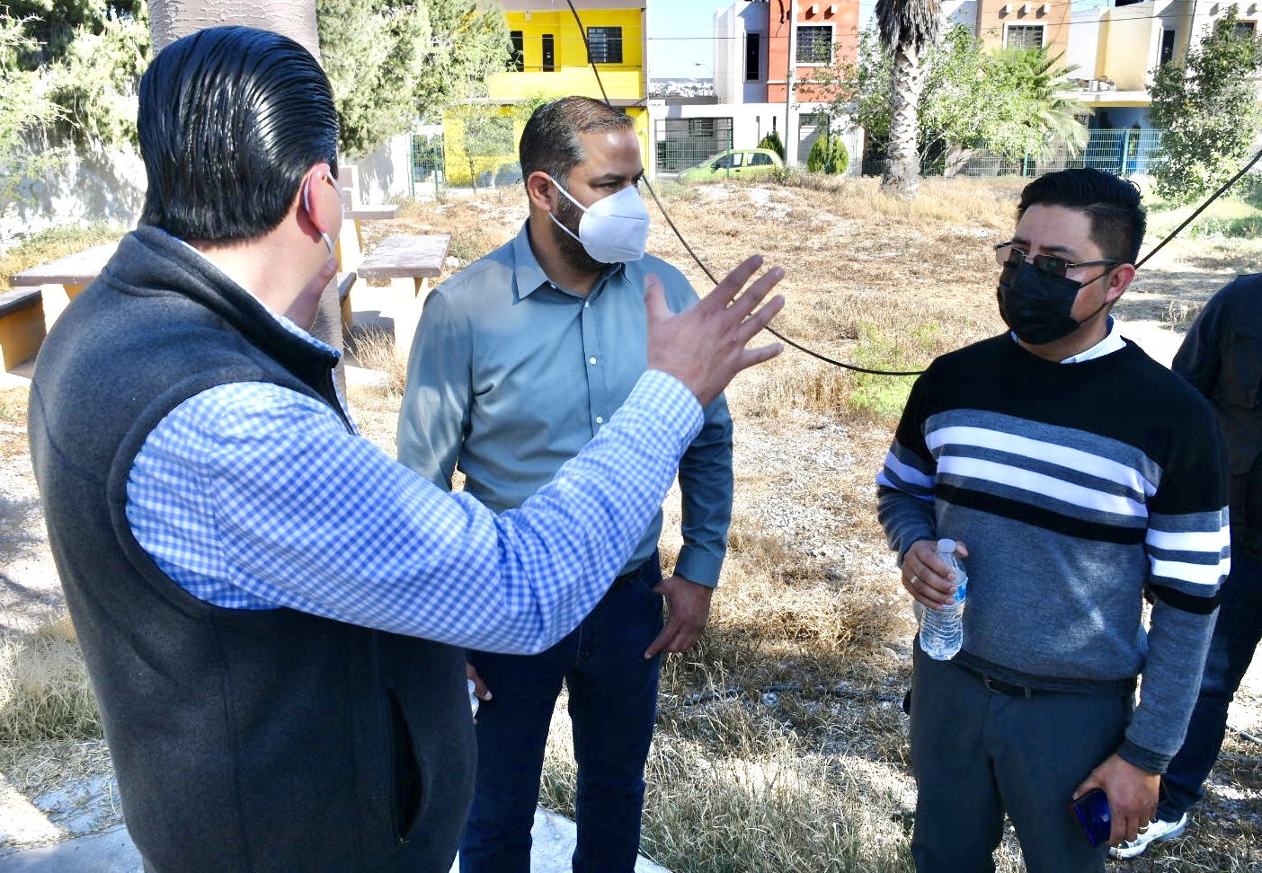 En su visita a la colonia Villas de Arizpe, el alcalde de Ramos Arizpe, Chema Morales Padilla supervisó junto al director de Obras Públicas, Omar Limón Lara; el secretario del Ayuntamiento, Alejandro González Farías y vecinos, la construcción de una cancha de fútbol, juegos infantiles y la remodelación de otros espacios públicos de este sector.