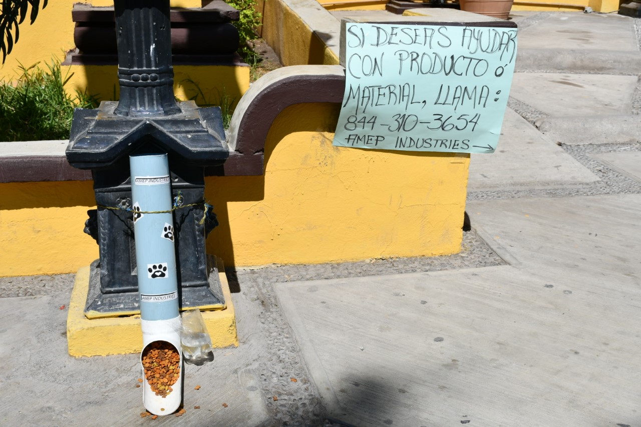 Los comederos fueron elaborados con diverso material, tales como tubos de PVC, codos sanitario y botellas de plástico; hasta el momento se han ubicado cuatro: En Plaza de Armas; al exterior de la Presidencia Municipal, en la escuela primaria Benito Juárez; en la zona centro y, en la Plaza Venustiano Carranza, entre el bulevar Plan de Guadalupe y bulevar Manuel Acuña.