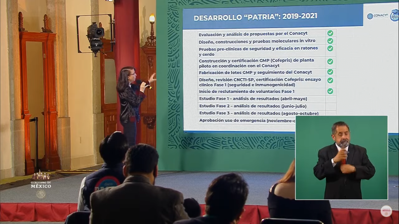 “Todavía queda el desarrollo de las tres fases de estudios clínicos donde también hay incertidumbre, pero tenemos confianza muy sólida para que llegue a ser un desarrollo vacunal mexicano que nos permita defendernos de la covid-19”, dijo la directora del Conacyt.
