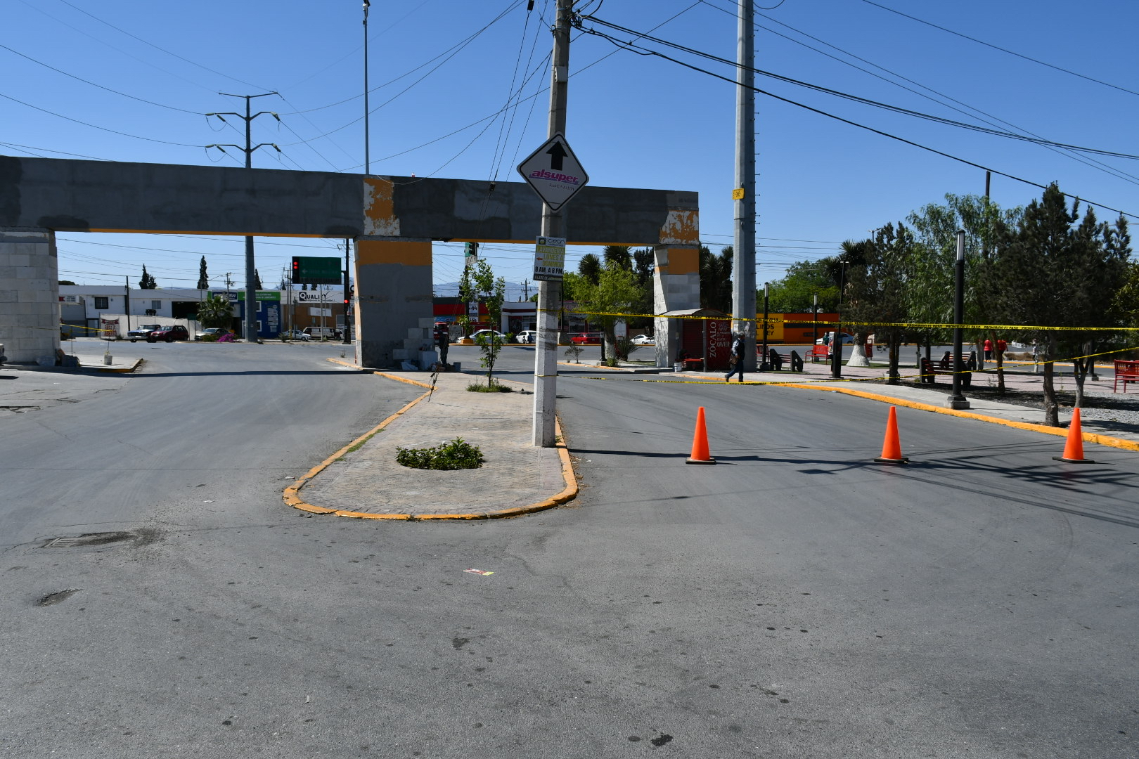 La vialidad de la calle Sindicalismo en su cruce con el bulevar Plan de Guadalupe, en la entrada a la colonia Fidel Velázquez, ha sido cerrada al paso vehicular debido a los trabajos de remodelación que continúan en los arcos de dicha colonia.