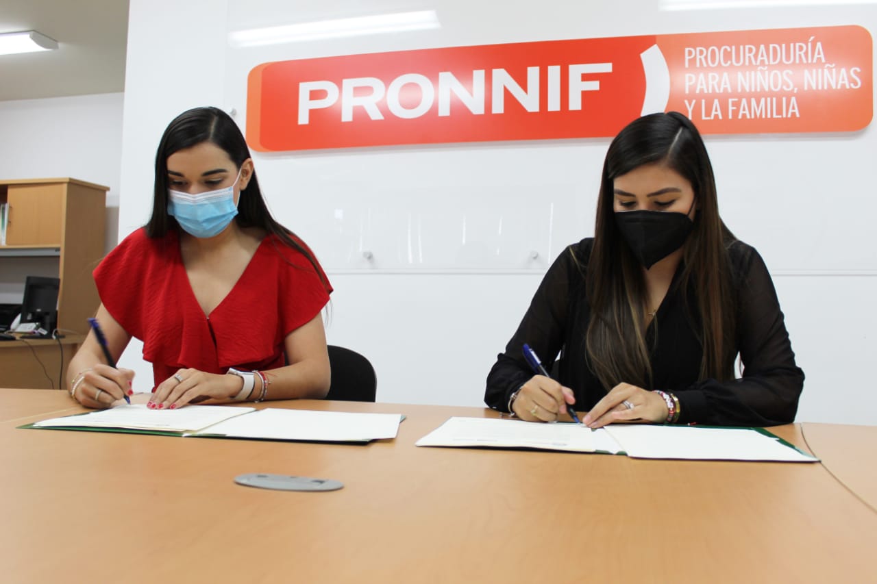 La titular de la Procuraduría para Niños, Niñas y la Familia del Estado (PRONNIF), María Leticia Sánchez Campos, firmó un convenio de colaboración con Azalea Maldonado Wong, titular del Instituto Estatal de la Juventud (ICOJUVE).