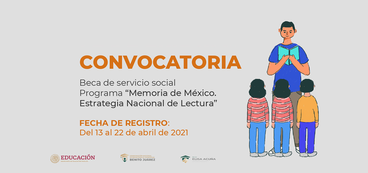 La Universidad Autónoma de Coahuila a través de la Coordinación General de Difusión y Patrimonio Cultural y el Departamento Central de Servicio Social, convoca a sus estudiantes de licenciatura a postularse a la obtención de la beca federal para realizar el Servicio Social en el programa “Memoria de México. Estrategia Nacional de Lectura”, la fecha límite de registro es el 22 de abril.