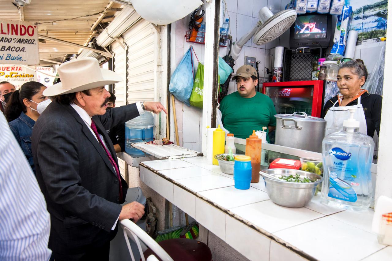 Guadiana recorrió las calles del Centro Histórico, además de que conversó con ciudadanos, dueños de negocios y gerentes de establecimientos nocturnos con quienes se comprometió a revivir toda el área pensando tanto en los habitantes de la zona, como en quienes buscar ejercer actividades productivas. (EL HERALDO)