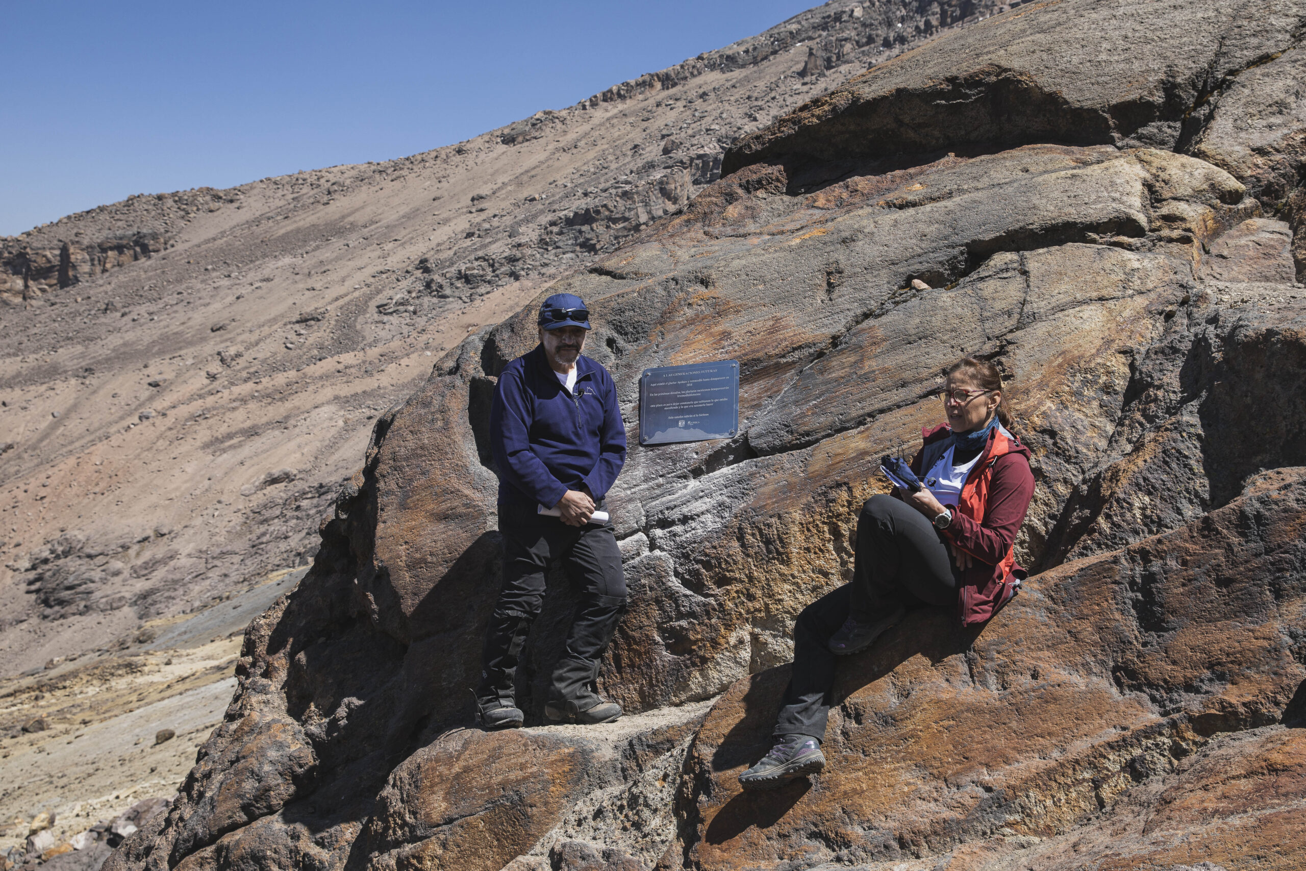 Hugo Delgado Granados, investigador del Instituto de Geofísica (IGf) y Anel Pérez Martínez, directora de Literatura y Fomento a la Lectura de la Coordinación de Difusión Cultural, acompañados por vulcanólogos y montañistas de la UNAM, escalaron el coloso para instalar la placa firmada por la UNAM, a 200 metros del refugio Otis McAllister, a cuatro mil 626 metros sobre el nivel del mar, en el costado poniente del Iztaccíhuatl, cuyo mensaje dice: