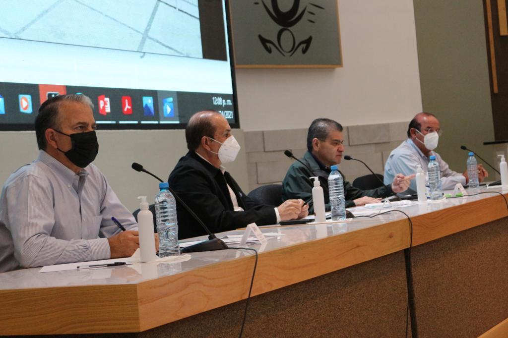 Piedras Negras. – El gobernador Miguel Ángel Riquelme Solís asistió a la 55 Reunión del Subcomité Técnico Covid-19 de la región Norte, donde resaltó la importancia de mantener una coordinación en el proceso de aplicación de la vacuna a la población y anunció la integración de dos Mesas Operativas: para el retorno presencial a las aulas, y para la reactivación de las cadenas productivas, al igual que en el resto de las regiones.