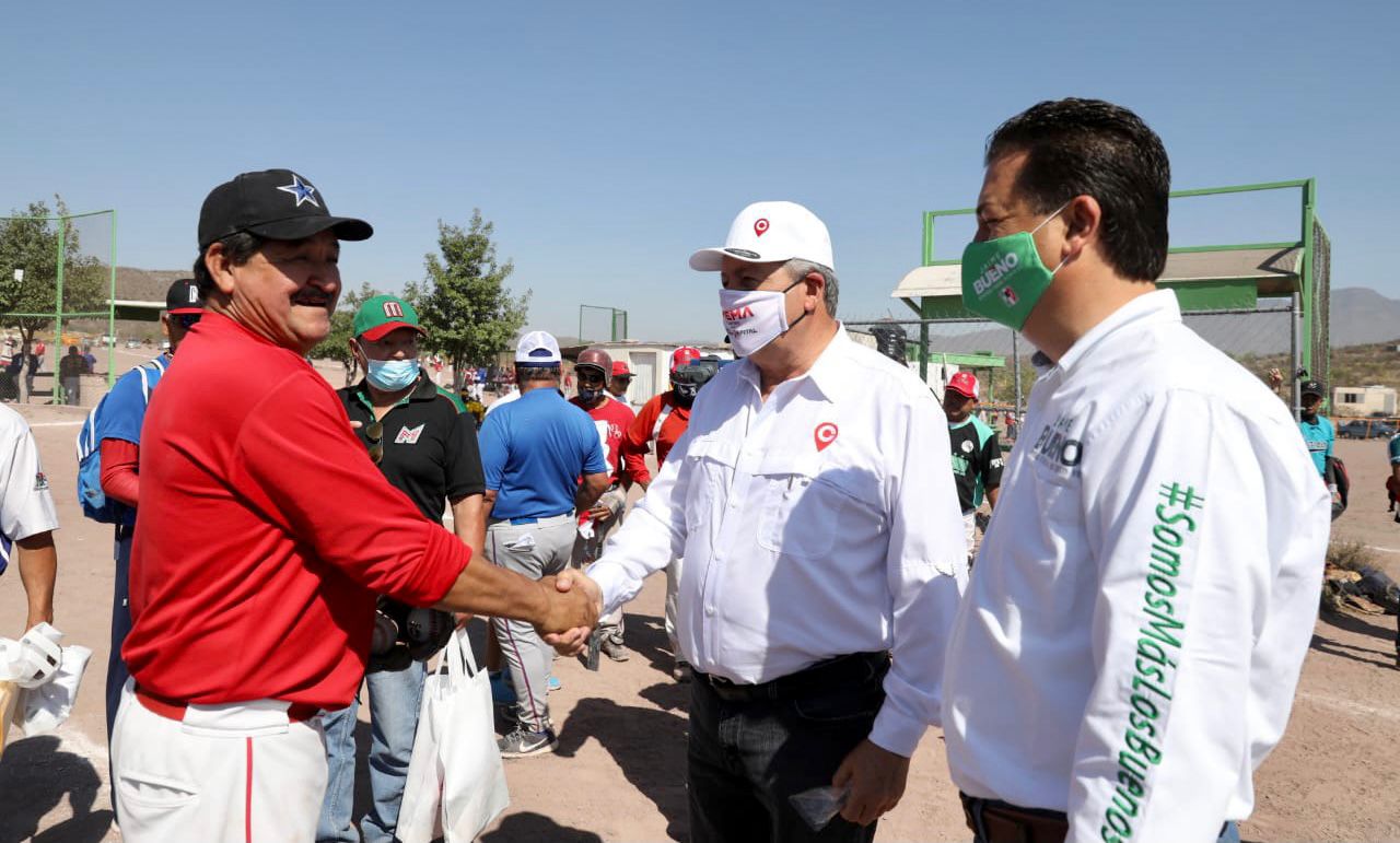 Acompañado por los candidatos a diputados federales por Saltillo, Jaime Bueno y Jericó Abramo Masso, el abanderado priista dialogó y convivió con el Club de Veteranos de Béisbol de Saltillo, en donde también se comprometió a apoyar a los más de 1200 miembros de la organización. (EL HERALDO)