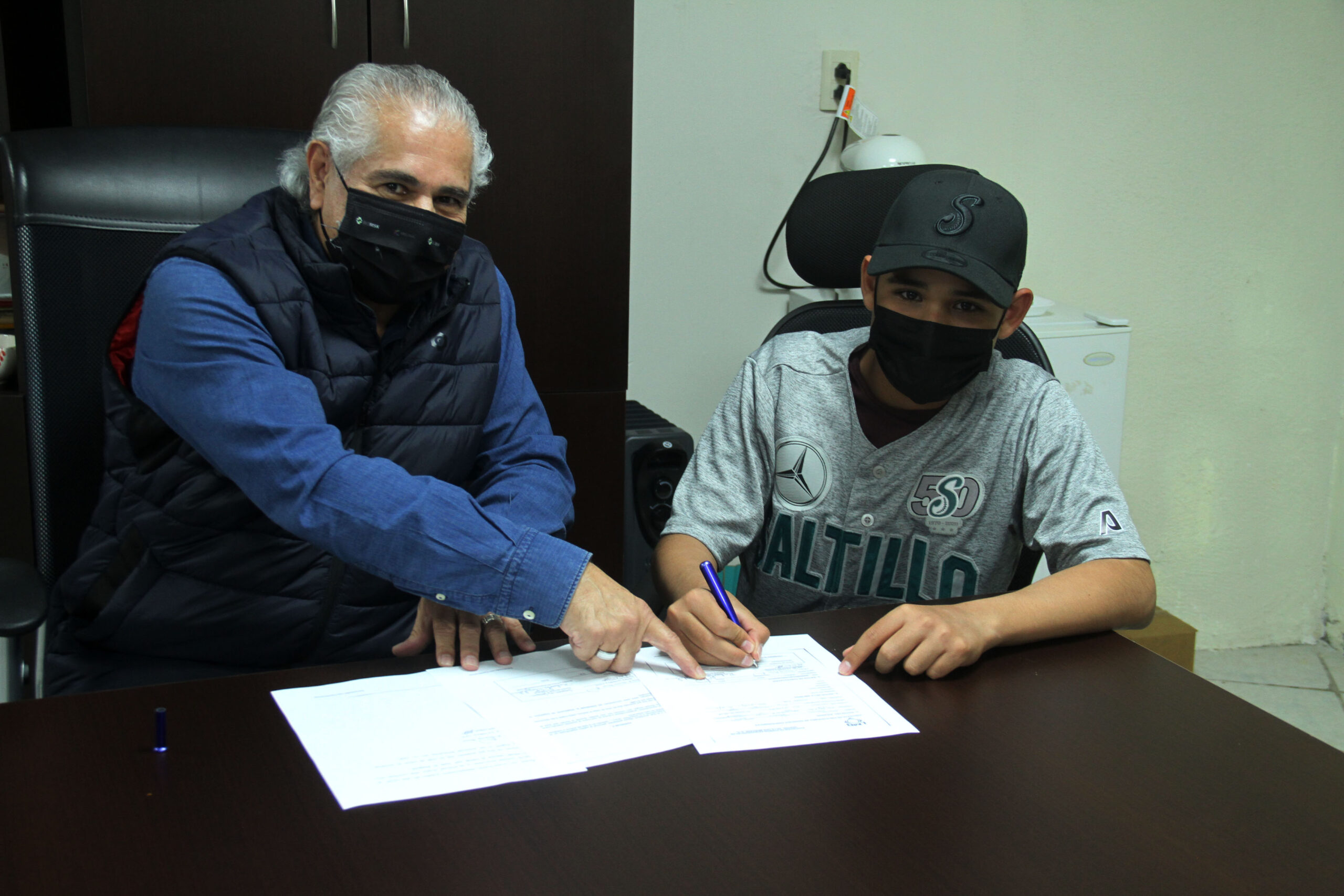 Esta semana, el licenciado Roberto Magdaleno Ramírez, Director Deportivo de la novena saltillense encabezó la firma de este nuevo talento yucateco para la organización sarapera, teniendo como testigos a sus padres Fely Lara García y Jorge Cervantes Ramos, además de la presencia del abuelo Francisco Cervantes y Monserrat Cervantes, hermana del joven pelotero.