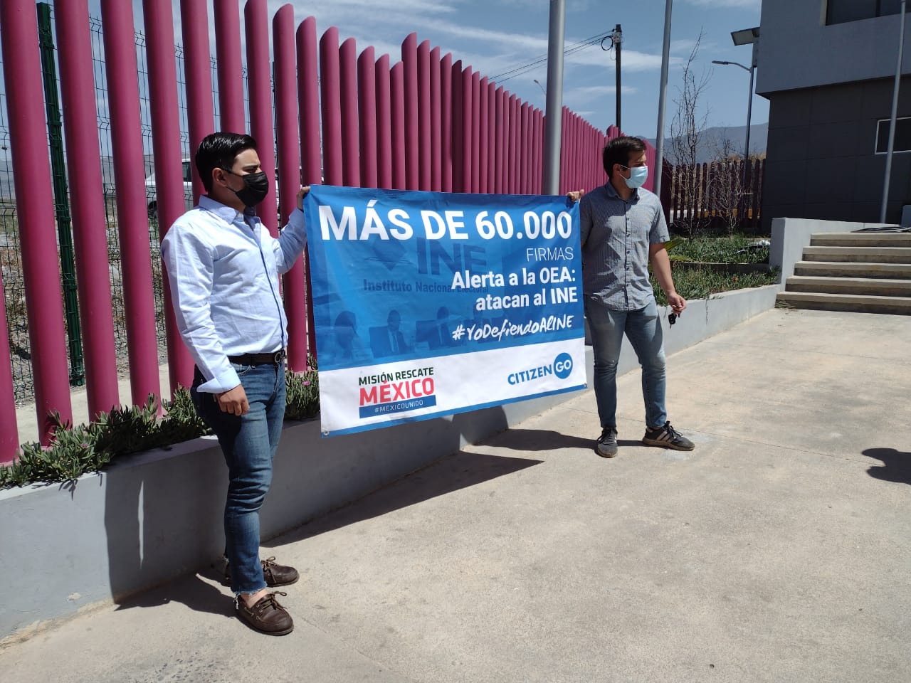 La tarde de este miércoles, en la sede del Instituto Nacional Electoral (INE) en Saltillo, jóvenes miembros de la organización civil «Misión Rescate México», entregaron a Itzel Aguilar Ambrosio, vocal de Capacitación Electoral y Educación Cívica de la Junta Local del INE en Coahuila, una memoria USB en la que se depositaron 60 mil firmas digitalizadas de ciudadanos, recolectadas a nivel nacional, para externar su apoyo al citado organismo.