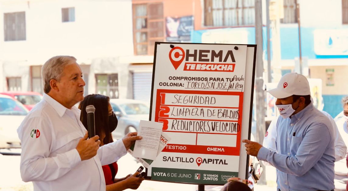 Este compromiso se dio durante un encuentro con ciudadanos que forma parte del programa “ Chema Te Escucha”, en donde el candidato de la coalición PRI- PRD se compromete a resolver los problemas de mayor urgencia que los propios vecinos le piden solucionar durante su gestión en la Presidencia Municipal, por lo que invitó a la ciudadanía a votar este 6 de junio por su proyecto de trabajo.