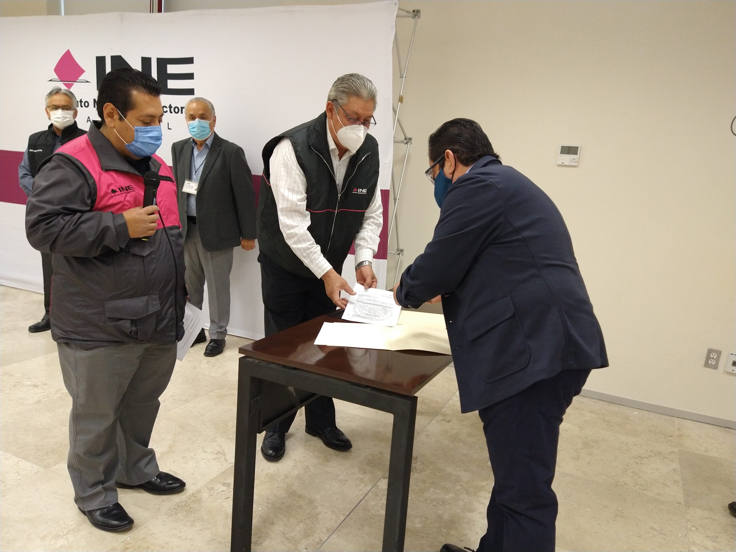 En dicha entrega, que se realizó en el marco de las actividades estipuladas por ley dentro del Proceso Electoral Federal y Local Concurrente 2020-2021, se contó también con la presencia de consejeros electorales locales, así como del secretario ejecutivo del Instituto Electoral de Coahuila (IEC), Francisco Torres Rodríguez, y representantes de los partidos políticos.