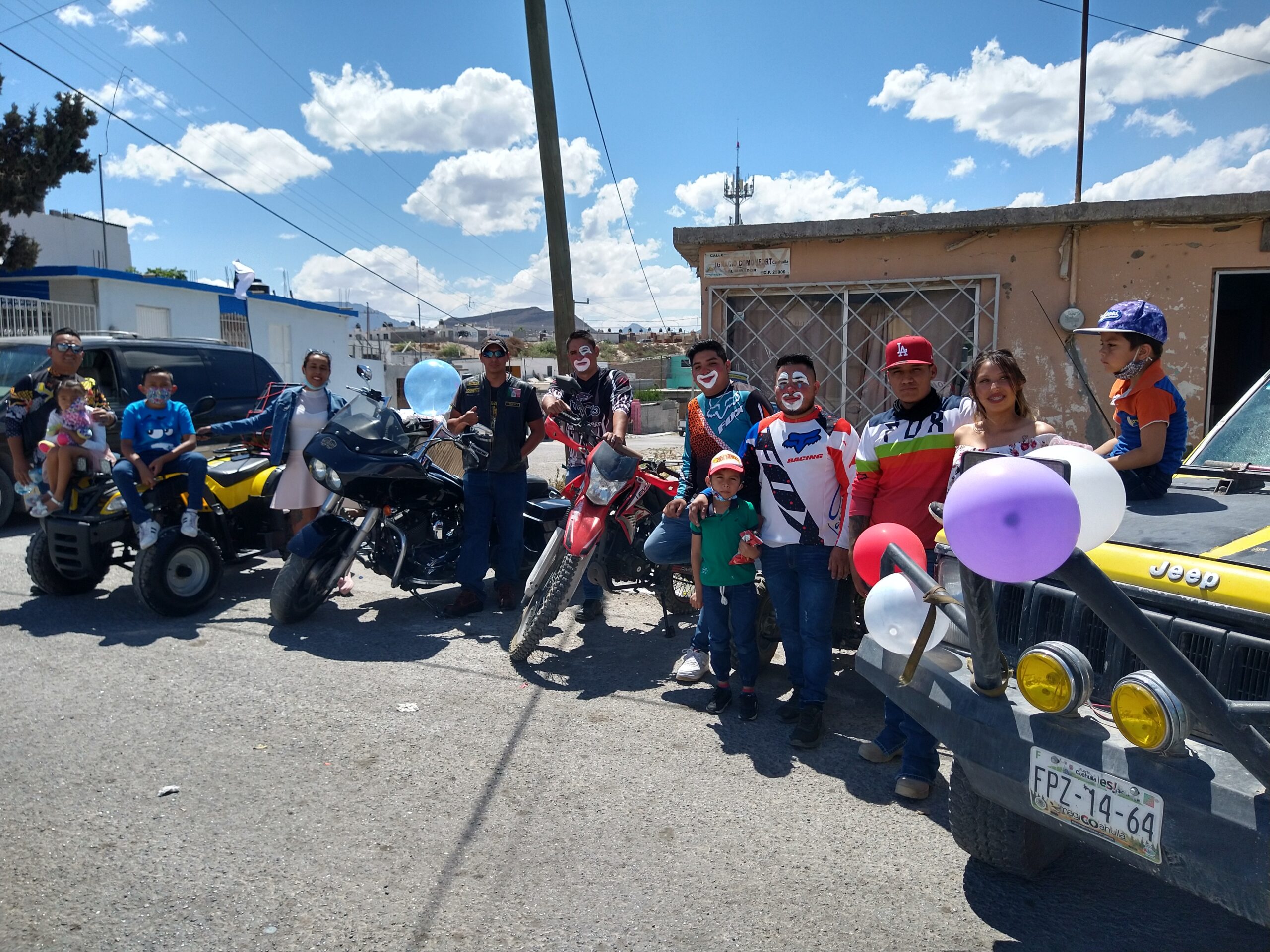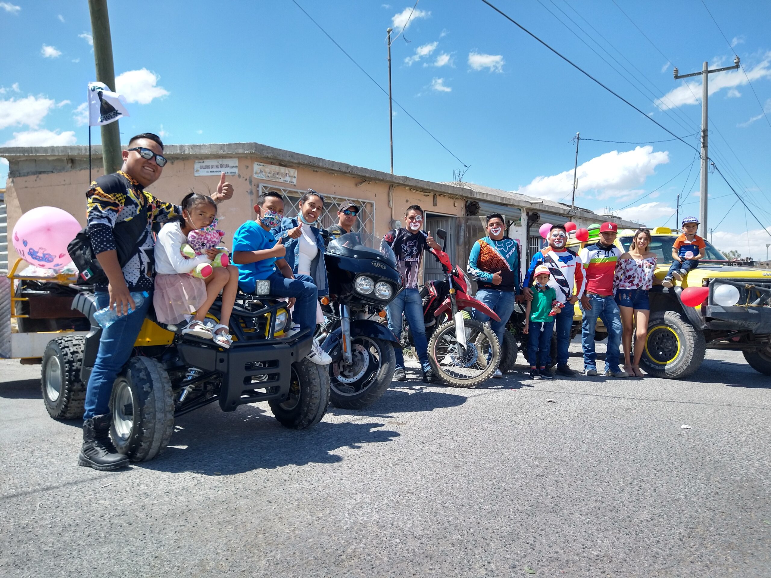 Este sábado, integrantes del club de motociclismo T-Rex Cross de Ramos Arizpe llevaron alegría a la colonia Urbi Villa, localizada al norponiente de esa vecina ciudad, mediante una actividad realizada en el marco del Día del Niño en la que obsequiaron juguetes, bolos y despensas a las familias de ese sector.