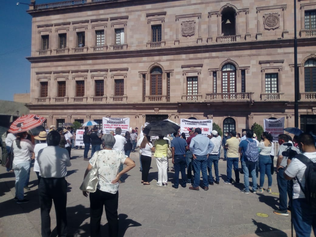Los docentes en retiro de la Universidad Autónoma de Coahuila, Universidad Agraria Antonio Narro y del sistema educativo estatal, se congregaron frente a la sede del Palacio de Gobierno, donde iniciaron una manifestación en la que se acordó quedarse de forma permanente hasta que sean atendidas sus demandas.