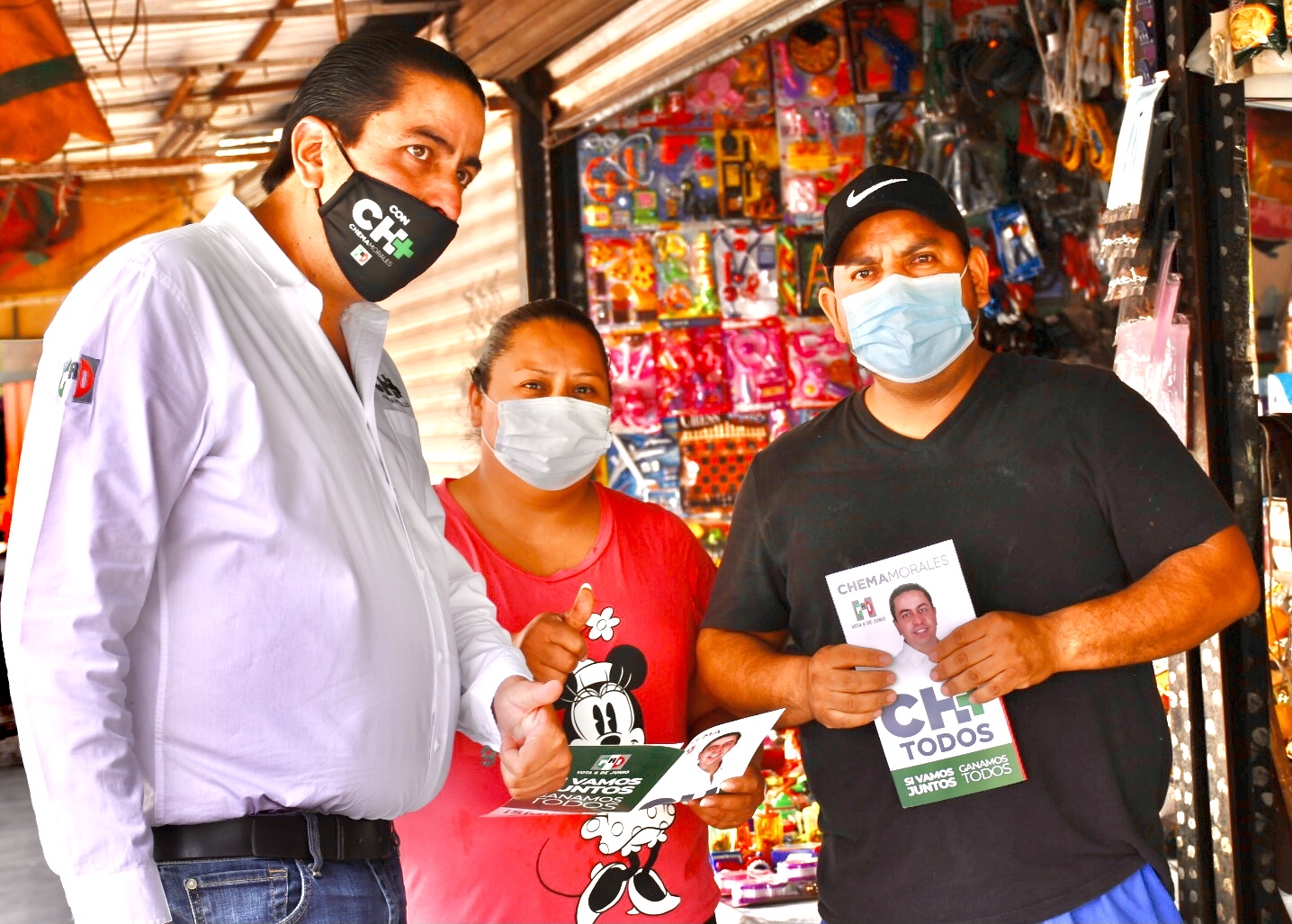 “En cada colonia visitáramos comercios locales desde tienditas, ferreteras, peluquerías, etcétera. Todos fueron golpeados económicamente por la pandemia y por eso buscamos con programas de rescate económicos sólidos y confiables llegar a más comerciantes que tengan un respiro en su economía” declaró el aspirante a la alcaldía. (EDUARDO SERNA)