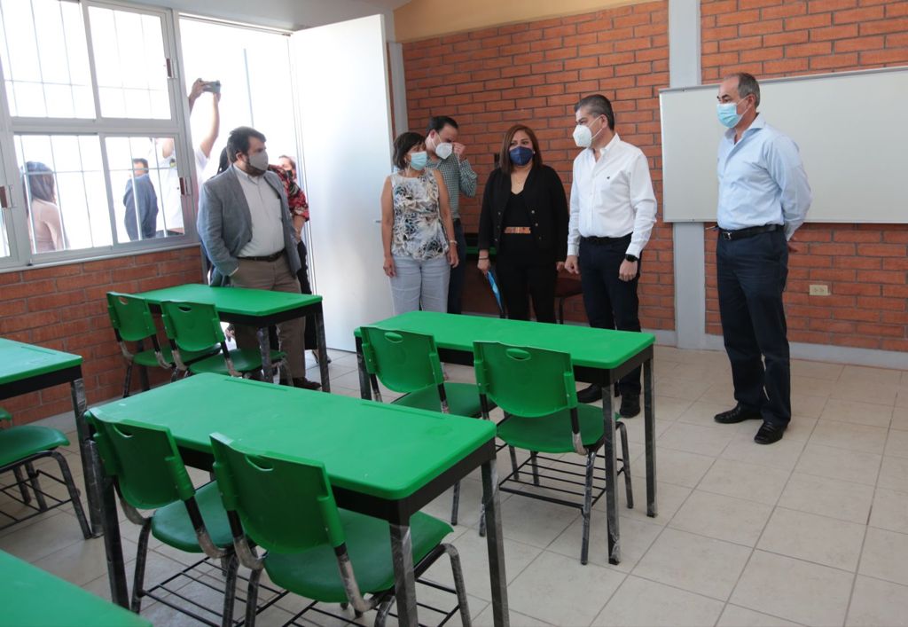 Expresó que pese a los embates de la pandemia, hoy las autoridades estatales y municipales se dan cita para entregar esta nueva escuela, que podrá iniciar con clases presenciales el próximo mes de agosto.