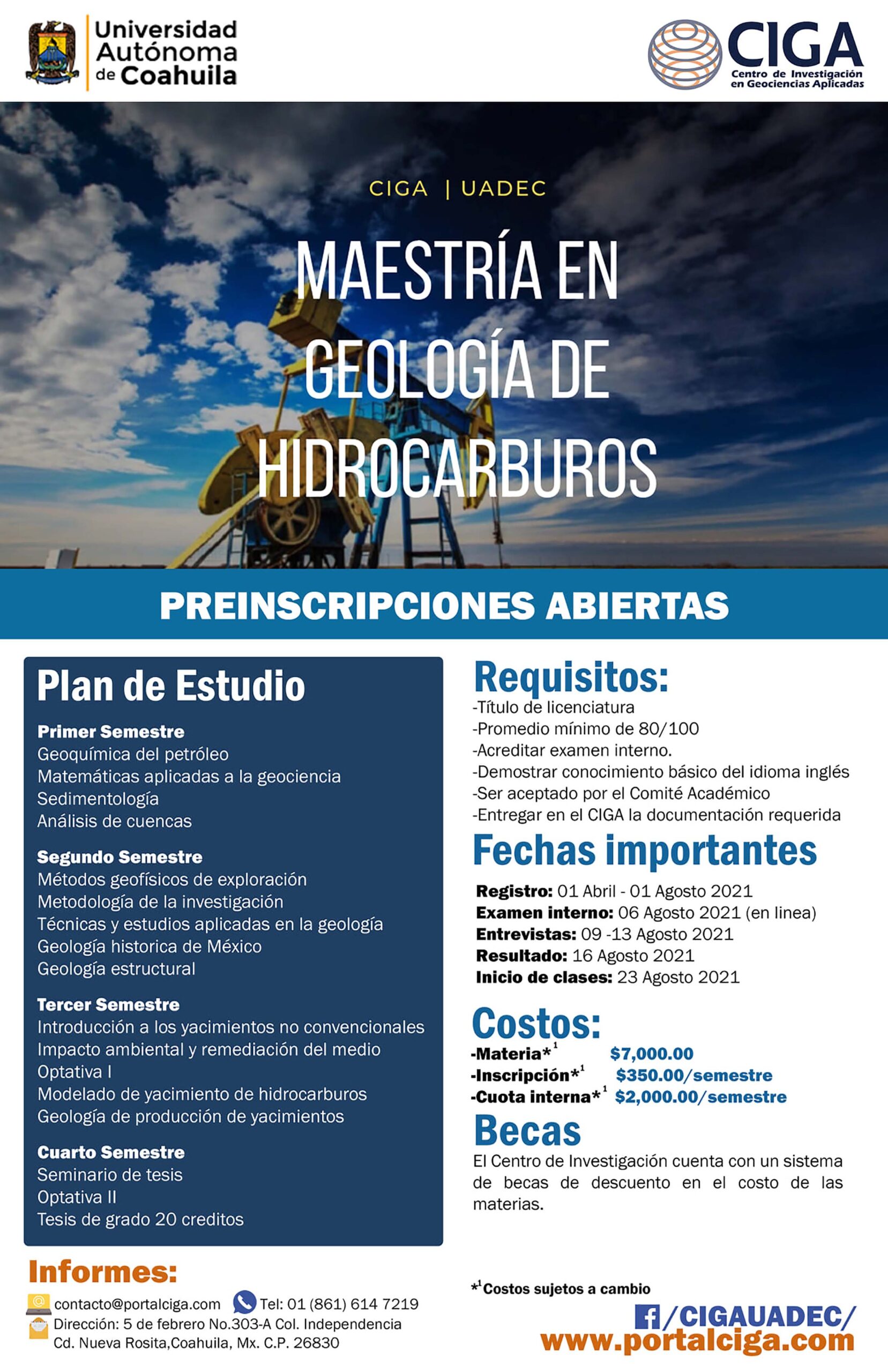 Nueva Rosita, Coahuila.- El Centro de Investigación en Geociencias Aplicadas de la Universidad Autónoma de Coahuila, convoca a egresados de Ciencias de la Tierra, a estudiar la maestría en Geología de Hidrocarburos para el periodo 2021-2023.