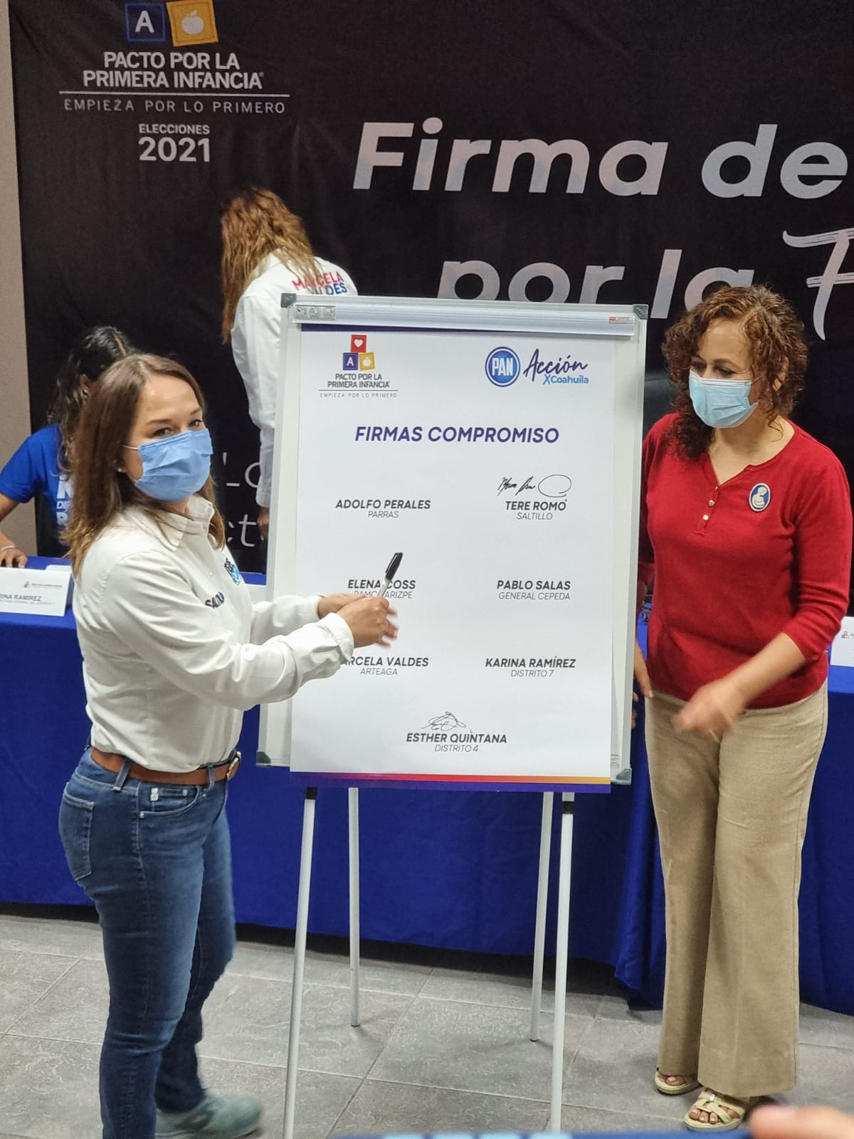 El acuerdo fue signado en las instalaciones del Partido Acción Nacional, en donde se sumaron las candidatas Tere Romo de Saltillo; Elena Coss, de Ramos Arizpe; Marcela Valdez de Arteaga; Karina Ramírez y Esther Quintana, ambas candidatas a Diputaciones Federales.