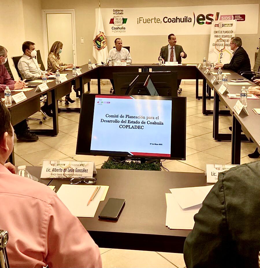Con el objetivo de establecer los lineamientos y estrategias que aseguren el cumplimiento del Plan Estatal de Desarrollo 2017-2023, se llevó a cabo la primera sesión ordinaria 2021 del Comité de Planeación para el Desarrollo Social del Estado de Coahuila (COPLADEC), integrado por las y los titulares de las diferentes secretarías del Gobierno de Coahuila.