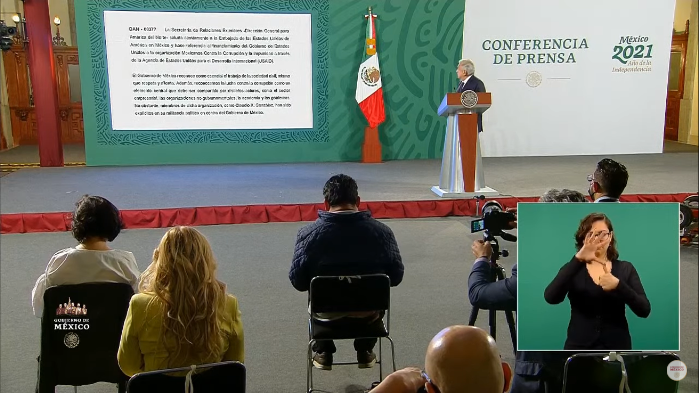 Ciudad de México.- El Gobierno de México envió una nota diplomática a Estados Unidos por el supuesto financiamiento a la organización civil ‘Mexicanos contra la Corrupción y la Impunidad’ (MCCI), dedicada al combate a la corrupción y que es crítica con su administración, dijo el viernes el presidente Andrés López en su conferencia de prensa matutina.