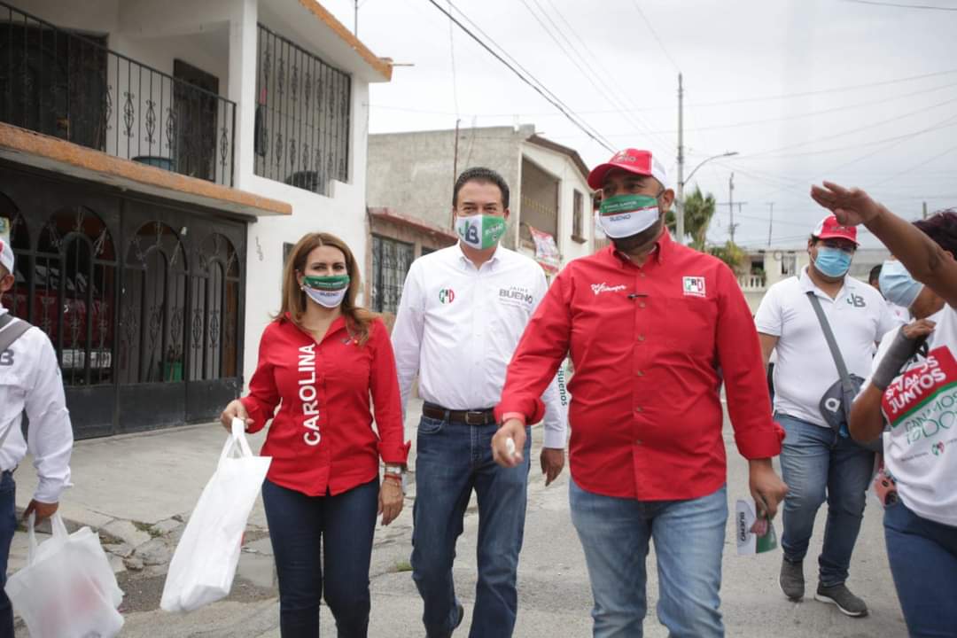 Acompañado en Saltillo por la Secretaria General de PRI, Carolina Viggiano, y por el presidente del PRI Estatal, Rodrigo Fuentes, recorrieron las calles de la colonia Valle de las Torres.