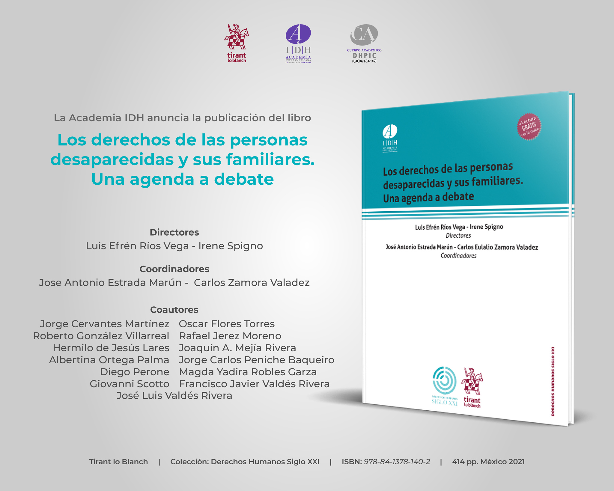 “Los derechos de las personas desaparecidas y sus familiares. Una agenda a debate”, forma parte de la colección “Derechos Humanos Siglo XXI” de la editorial Tirant lo Blanch y es la más reciente publicación literaria de la Academia, donde se abordan los estudios introductorios en la construcción de paz y capacitación en derechos humanos.