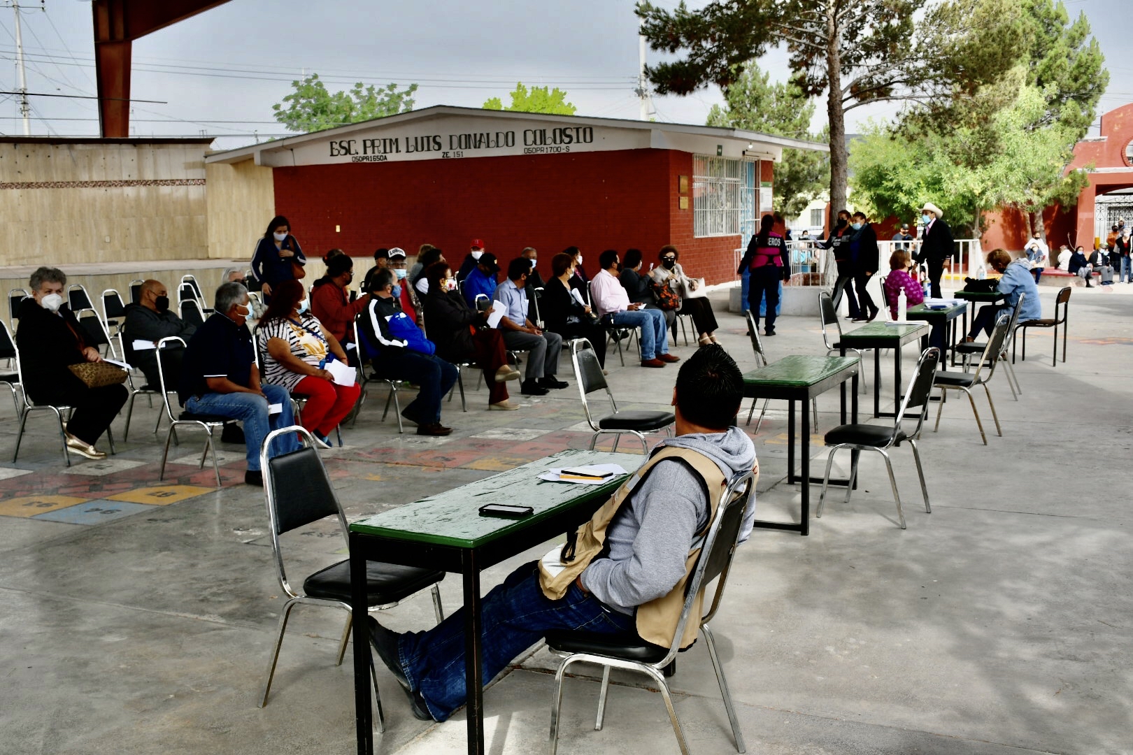 “En este punto se está aplicando la segunda dosis de la vacuna Sinovac a personas adultas mayores qué previamente habían sido vacunadas en este plantel. Se está citando a la gente en base a los registros que tenemos de la primera dosis, atendiendo este viernes y mañana sábado” explicó Amanda Elia Molina, responsable de la vacunación en la escuela Luis Donaldo Colosio.
