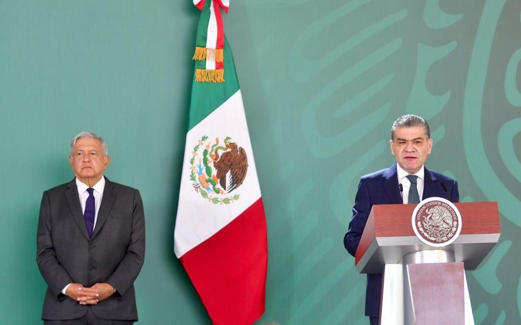 Torreón, Coahuila.- Luego de participar en la Reunión del Gabinete de Seguridad Federal y durante conferencia de prensa, el Presidente Andrés Manuel López Obrador y el gobernador Miguel Ángel Riquelme Solís refrendaron la disposición para redoblar el paso en acciones que permitan seguir obteniendo los resultados que Coahuila disfruta y proyecta en bienestar, desarrollo económico y generación de empleo.