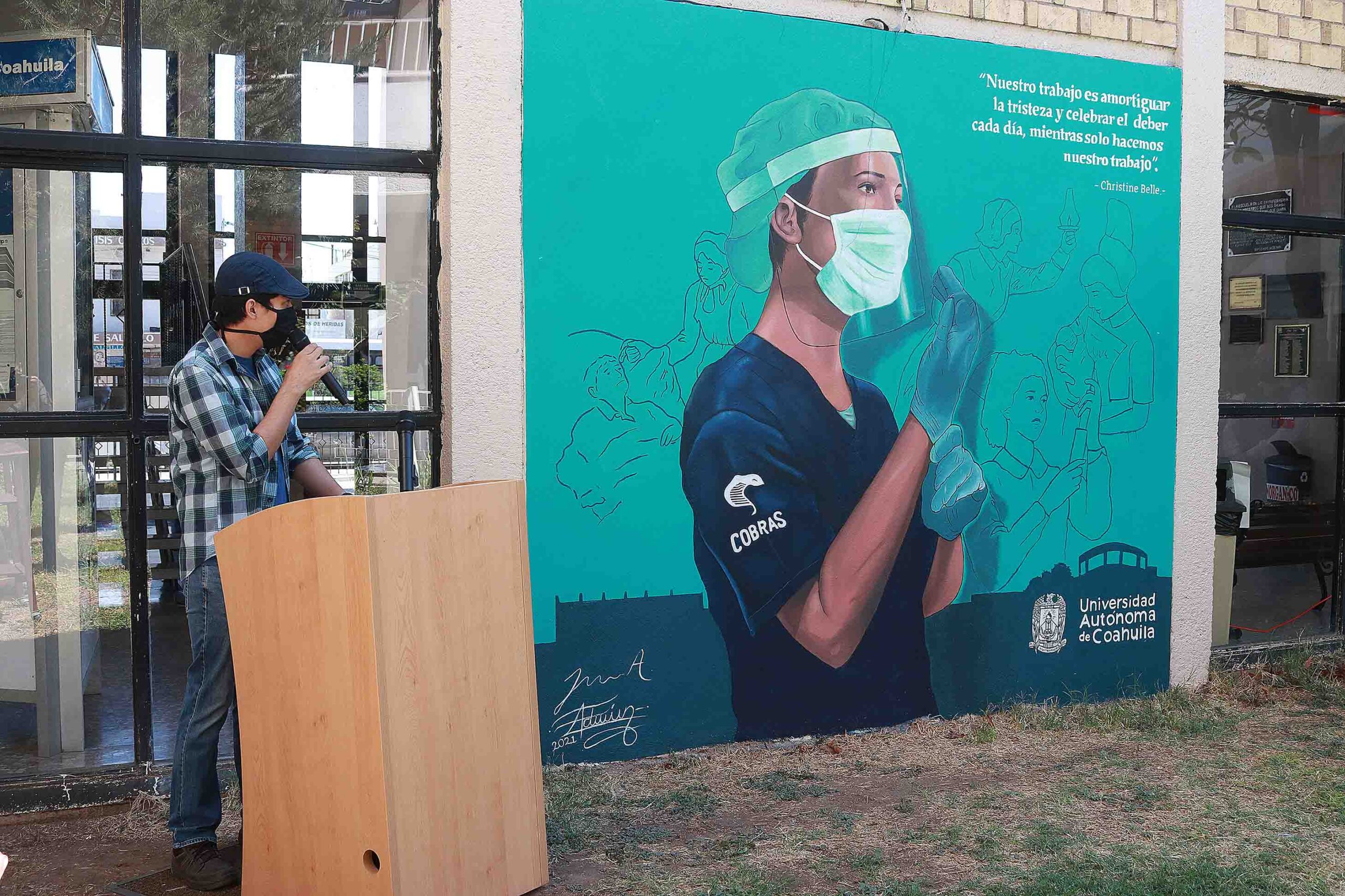 En su mensaje el rector, Salvador Hernández Vélez, expresó que el mural es un homenaje a todas las acciones que llevan a cabo los profesionales de la salud; destacó la participación que tuvo la Facultad de Enfermería durante la vacunación contra el covid-19 a adultos mayores y señaló que es un orgullo para la UAdeC ser formadora de enfermeras y enfermeros capaces y entregados, así como de artistas destacados como los que forma la Escuela de Artes Plásticas.