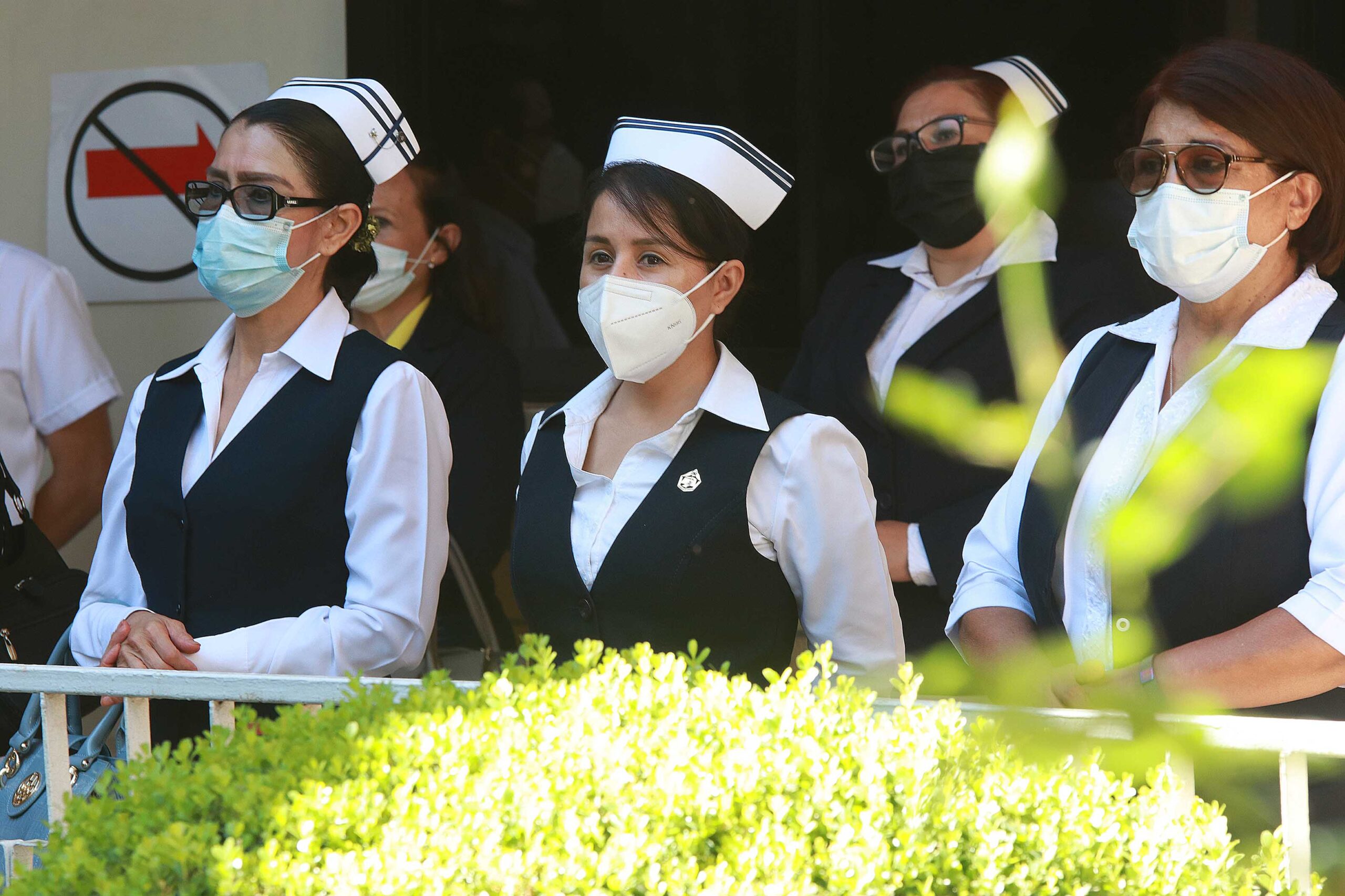 Así mismo, estuvieron presentes alumnos del Consejo Directivo de la Facultad de Enfermería y docentes, además de los jefes y jefas de enfermeras y enfermeros de diversas instituciones de salud como el jefe de Enseñanza de Enfermería del Hospital Universitario de Saltillo, Pablo López Rodríguez, la coordinadora Estatal de Enfermería, Dora Elena Campos, los miembros del Colegio de Actualización de Enfermería de Coahuila, Martha Elena Medina Espinoza y Diamantina Casas Sánchez, la jefa de enfermeras del Hospital General de Saltillo, Leticia Sánchez Guillen y el jefe de Enseñanza de Enfermería del Centro Estatal de Salud Mental.