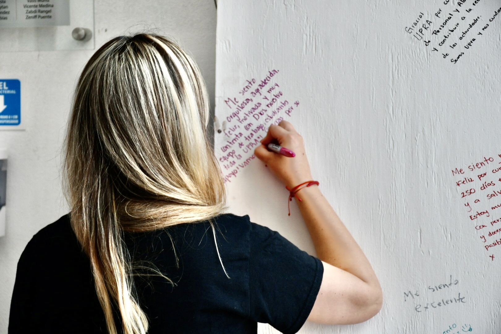 El ejercicio, explicó la rectora, Cecilia Ileana de la Garza Martínez, consistió en escribir en un mural colocado en la entrada del edificio principal pensamientos, anécdotas o agradecimientos a personas que apoyaron al estudiante durante los momentos más difíciles en tiempos de pandemia.