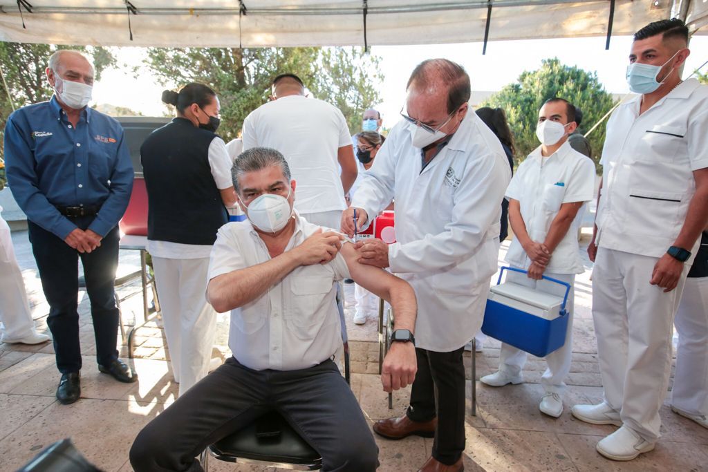 “Tuve la fortuna de no contagiarme y pues hasta hoy que me aplico la vacuna espero también dentro de este proceso no me toque, porque hay quien se puso la vacuna y a los pocos días ya lo traía o se contagió. La verdad es que ahorita me siento bien y acudo con la mejor disposición de apoyar al Gobierno Federal para que el proceso de vacunación se dé de una forma ágil y se dé la menor molestia posible a la gente”, expuso el Gobernador.