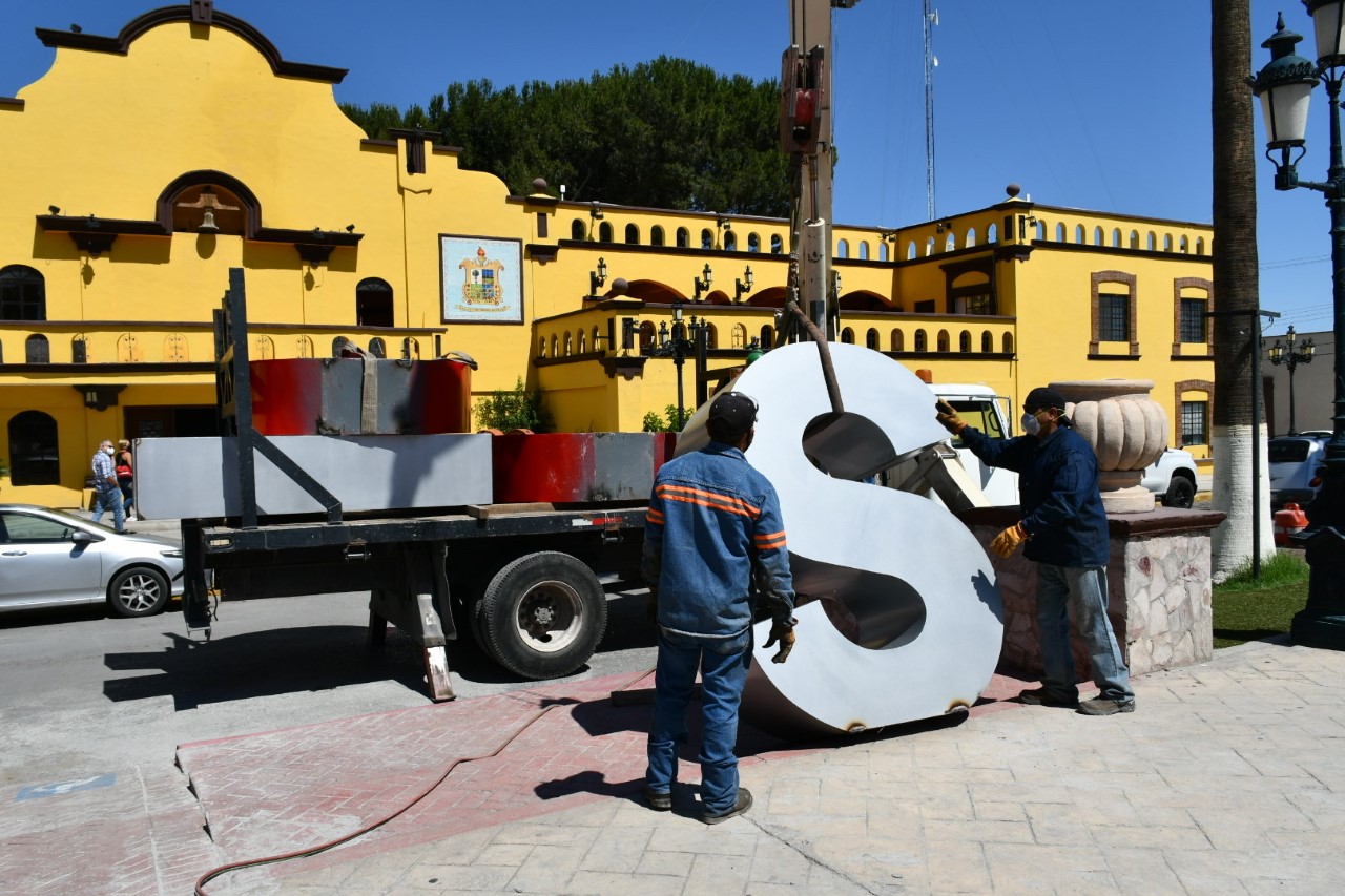 Luego de que fueran colocadas las letras monumentales de Ramos Arizpe en la Plaza de Armas frente a la Presidencia Municipal por motivo del cuadragésimo primer aniversario de la ciudad, este viernes 21 de mayo fueron removidas para ser ubicadas en otro punto de la ciudad.