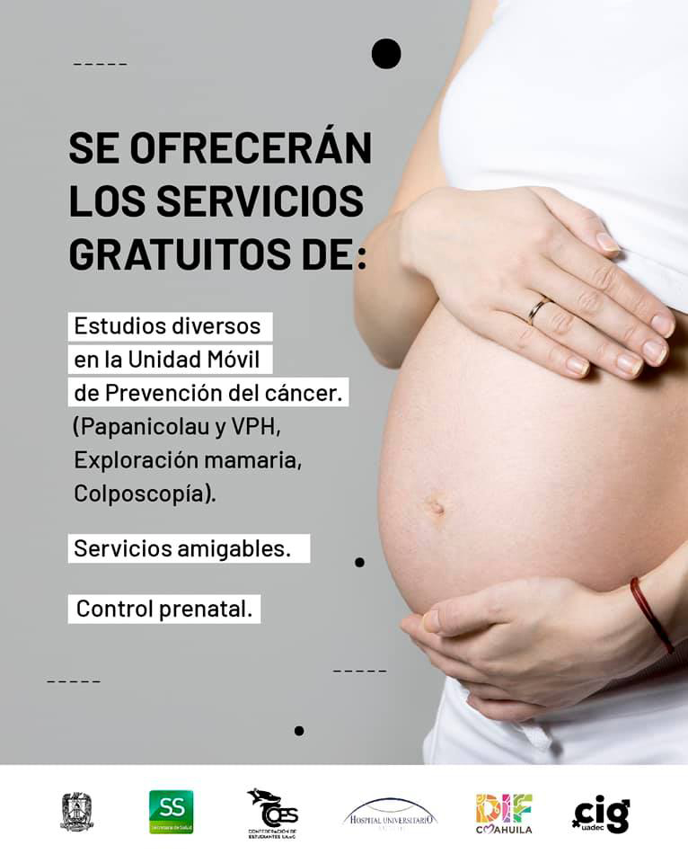 Las dependencias participantes son el Hospital Universitario de Saltillo, la Confederación de Estudiantes, la Secretaria de Salud y el DIF Estatal; durante la jornada se ofrecerán servicios gratuitos de estudios diversos en la unidad móvil de Prevención del Cáncer, entre ellos el Papanicolaou y VPH, exploración mamaria y colposcopia, así como servicios amigables y control prenatal.