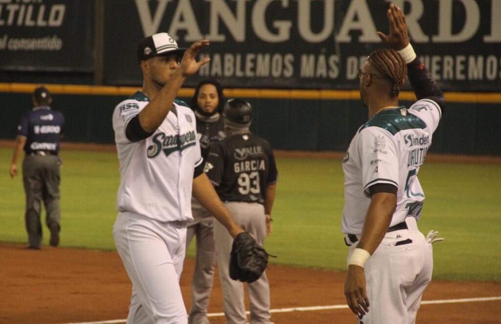 La novena saltillense respondió en la sexta tanda con par de anotaciones, Juan Pérez abrió la tanda con doble y timbró con sencillo de Manny Rodríguez que pisó el pentágono más adelante con fly de sacrificio de Kennys Vargas, para igualar el marcador, aunque dejaron dos en base.