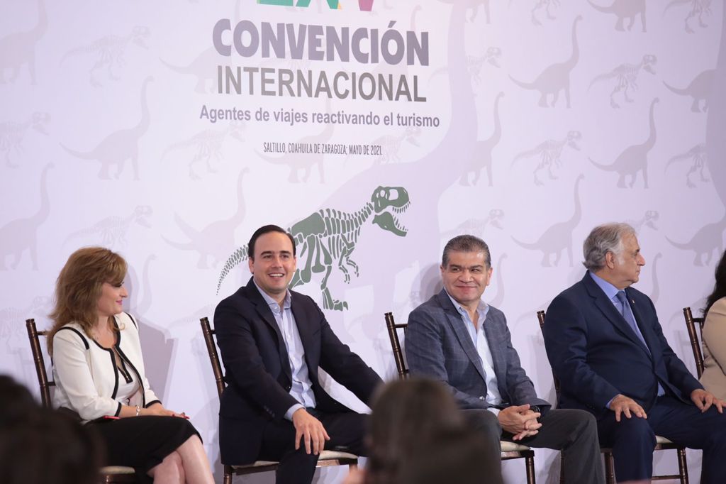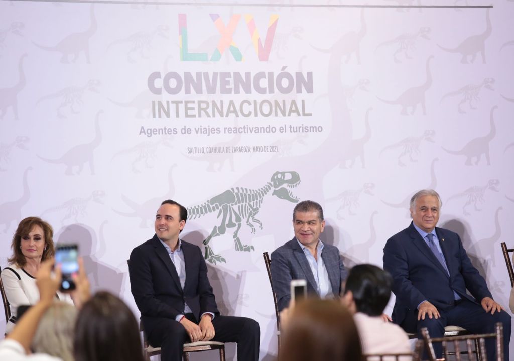 “Continuamos trabajando en la reactivación económica segura, con la unión de esfuerzos de todos los coahuilenses y de los sectores productivos. Hoy nuestra entidad vuelve a mostrar a México y al mundo sus atractivos turísticos y su alta competitividad para recibir importantes eventos, como esta Convención de Agencias de Viajes”, señaló Riquelme Solís.