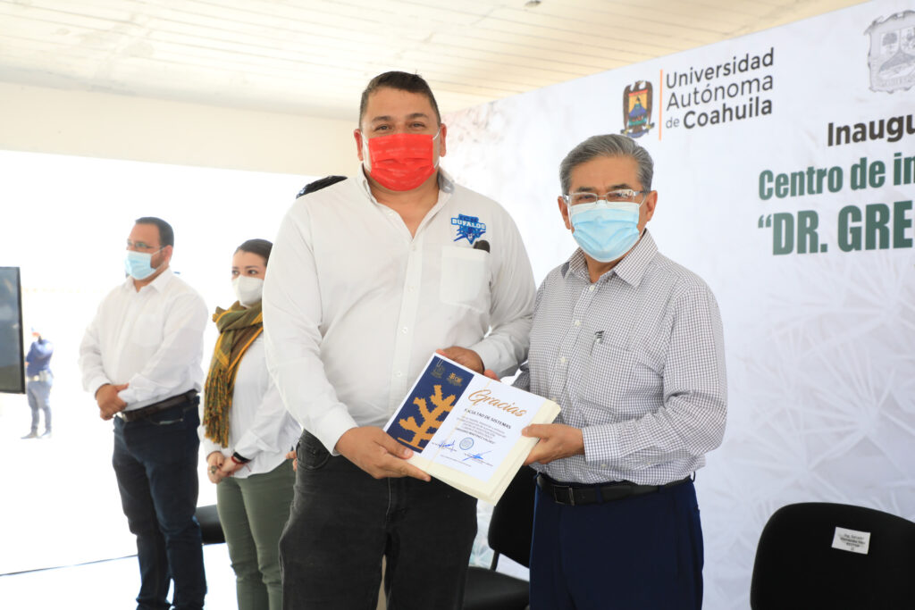 Hernández Vélez, anunció que el CIJE tomará por nombre “Centro de Investigación y Jardín Etnobiológico ‘Dr. Gregorio Martínez Valdés’”, en honor a quien fue uno de los mayores científicos y divulgadores del conocimiento agrícola de Coahuila y en especial de Viesca, quien comenzó sus estudios en la Escuela de Bachilleres Aguanueva que hoy pertenece a la UA de C, para luego proseguir su formación en la UAAAN y en la Universidad de Wisconsin.